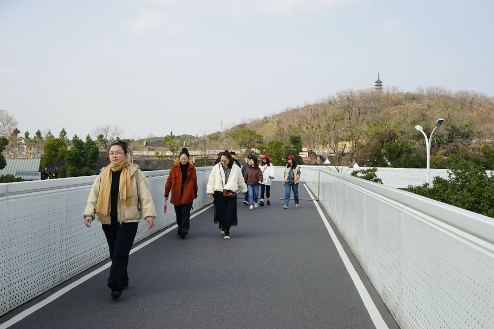 空中廊道被譽為健康廊道,姐妹們最后通過廊道回到文創(chuàng)園。走在廊道上,極目遠眺,感受初春的氣息與風(fēng)光,身心得到徹底放松。那一刻,人與自然、與城市交相輝映,構(gòu)成了一道美麗的風(fēng)景。