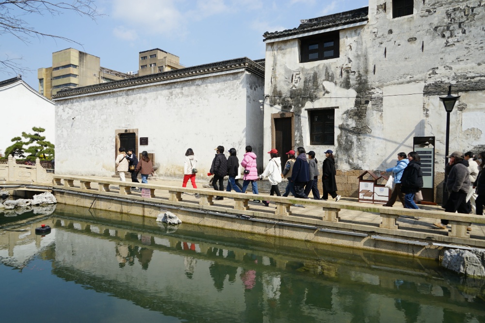 步履輕盈如行云流水,魅力綻放似春風(fēng)拂柳。下午1點半,大家相約在中絲三廠文創(chuàng)園集合,隨后沿著塘河一路往北,來到干河街歷史街區(qū),參觀徐志摩故居。