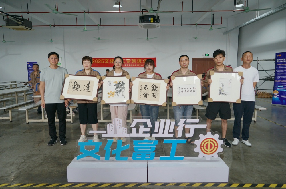 本次活動在不影響大家工作的前提下進(jìn)行,隨著午餐時(shí)間的到來,公司員工們陸續(xù)步入餐廳就餐,活動正式開始。首先是文娛演出,節(jié)目有笛子、二胡、薩克斯、唱歌、街舞等,還有工會法、國家安全知識問答。期間還給5個(gè)優(yōu)秀員工贈送了由海寧職工書畫院書畫家們創(chuàng)作的書畫作品,贏得大家的喜愛和追捧。
