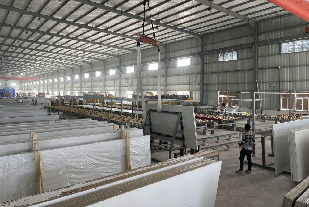 柬埔寨高金石有限公司是由福建磐珉新材有限公司于201911月在特區(qū)設(shè)立,主要生產(chǎn)可應(yīng)用于住宅和商業(yè)室內(nèi)裝飾的環(huán)保石英石板材產(chǎn)品,包括廚房臺(tái)面、浴室臺(tái)面、辦公桌、墻板等,項(xiàng)目分二期建設(shè),目前一期投資1000萬美元,建筑面積24000平方米,員工230人,年出口1800多萬美元;二期計(jì)劃擴(kuò)建用地28000平方米。