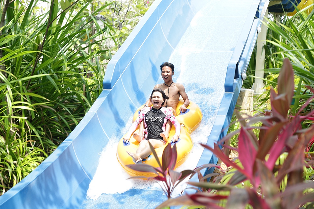 樂園目前配備12套大型游樂設施,近百條戲水滑道。其中包括垂直距離高達28米、下滑角度70°的國內頂尖心跳滑道——尖峰時速;長達1350米、詮釋雨林故事的休閑漂流項目——雨林漂流;面積16000平方米、海嘯浪可高達3米的造浪池項目——颶風海嘯及歡樂海岸;被稱之為“亞洲奇跡“的長280米的超長水上過山車——水上飛龍。