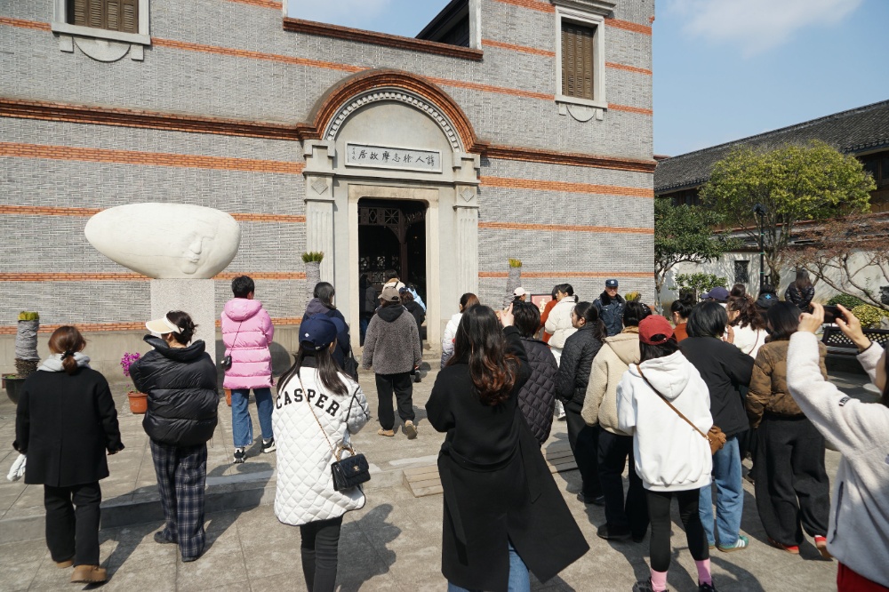 步履輕盈如行云流水,魅力綻放似春風(fēng)拂柳。下午1點半,大家相約在中絲三廠文創(chuàng)園集合,隨后沿著塘河一路往北,來到干河街歷史街區(qū),參觀徐志摩故居。