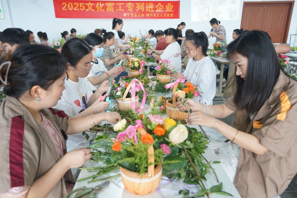 接著是“‘愛在四季?工會有約’公益培訓(xùn)”——插花活動,由專業(yè)的插花老師現(xiàn)場授課教學(xué)。老師從插花的基本技巧、花材選取、顏色搭配、審美構(gòu)圖等逐一講授,并同步演示了插花全過程。大家發(fā)揮自己的想象,用心構(gòu)思、精心創(chuàng)作,在一修一剪之間,一件件細(xì)致精美、別出心裁的插花作品逐漸呈現(xiàn),沁人心脾。聞著花香,交流著心得,看著一束束原本普通、零散的花朵變成了精致的藝術(shù)作品,每個(gè)人的臉上洋溢著滿滿的成就感和幸福感。